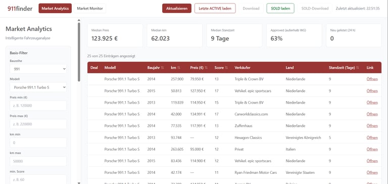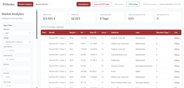Automatisierte Marktanalysen, Echtzeit-Statistiken und intelligente Preis-Scoring-Algorithmen.
