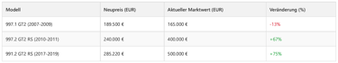 Porsche 997 991 GT2 und GT2 RS Preisentwicklung
