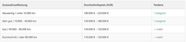 Tiefpunkt der Gebrauchtwagenpreise lag bei ca. 110.000-120.000 € (2012/2013)