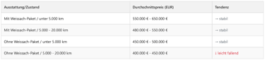 Die in dieser Analyse verwendeten Daten basieren auf Marktbeobachtungen, Verkaufsstatistiken und Experteneinschätzungen aus verschiedenen Quellen. Alle angegebenen Preise sind Durchschnittswerte und können je nach individueller Ausstattung, Zustand und Laufleistung erheblich variieren.