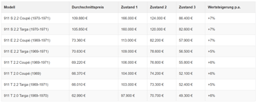 Porsche 911 F-Modell 2. Generation Preisentwicklung