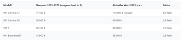 Porsche 911 Basis (1973-1977): ca. 35.000-40.000 € (beide Karosserievarianten)