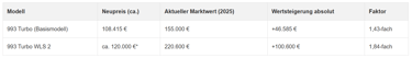 Porsche 993 Turbo und Turbo S Preisentwicklung