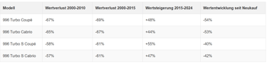 In dieser Analyse untersuchen wir die Preisentwicklung des Porsche 996 Turbo und Turbo S von der Markteinführung bis heute und wagen einen Ausblick auf die zukünftige Wertentwicklung bis zum Jahr 2030.
